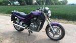 Wiwo Drahtspeichenräder, progressive Gabelfedern von Wilbers, Lucas Stahlflex Bremsleitung.------ Suzuki VX 800, Baujahr 1992, Laufleistung 48000 km, Farbe Deep Purple Metallic (1HU) Wiwo Drahtspeichenräder