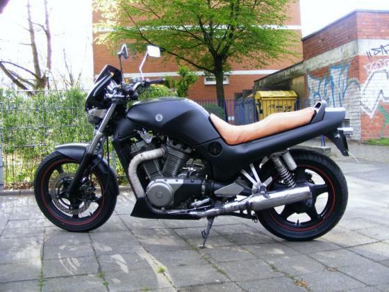 Umlakiert auf Schwarzmatt(auch Getriebedeckel).Felgen schw.matt mit rotem Ring. Reifen weiß beschriftet. Krümmer mit Hitzeschutzbandagen. Sb-Lenker mit schw.Ochsenaugen, hinten kl.Blinker,Bugspoiler, Chokehebel am Tank