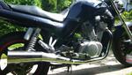Heckumbau:Rücklicht,Kennzeichenhalter,Blinker Front: Klarglasscheinwerfer,Blinker,Puig Windschild,Blaue LED Tachobeleuchtung nach der Anleitung vom VX Forum. Anderer Lenker von AMB mit anderen Lenkerenden und Griffen. BSM Auspuff Classic 2-2 Öltemeraturanzeige Progressive Gabelfedern von Wilbers