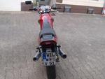US-Modell. Eigene Veränderungen: ,MT-03 Scheinwerfer,Stahlflex rot hi/vo ,LED Zusatz-Rück/Bremslicht,Superbikelenker rot eloxiert, rutschhemmender Sitzbankbezug ,Miniblinker,Warnblinkanlage,Alu -Gummigriffe,Gabelprotektoren, lackierter Kühlerrahmen,Grill,Bremssättel und Gabelabdeckungen usw.