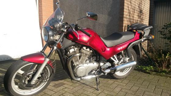 Die Suzuki ist in original Farbe lackiert. Die Folien wurden mit Klarlack überlackiert. Die Halter für die Koffer sehen nicht schön aus, aber funktionieren.