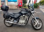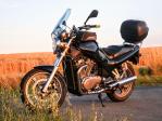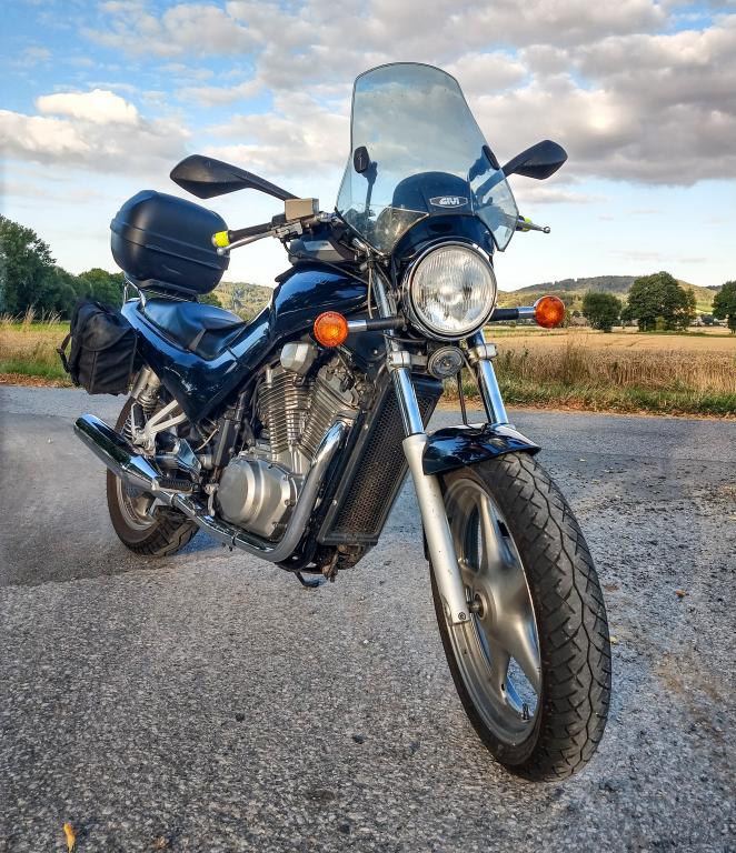 Eigentlich nur Anbauten (Scheibe, Tasche, Topcase), sonst ziemlich original. Etwas höherer Lenker.