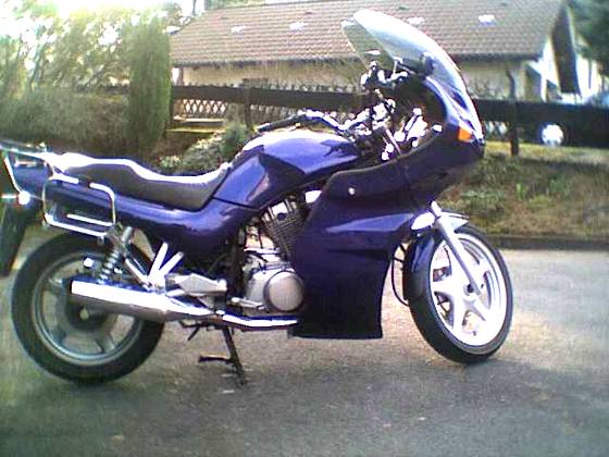 als Unfallmotorrad gekauft und mit gebrauchten Teilen wieder aufgebaut. Nach kurzem Aufbau mit Vollverkleidung, ideal für die Langstrecke, hab ich dann doch wieder zurückgebaut. Nackt ist sie Schönsten.
