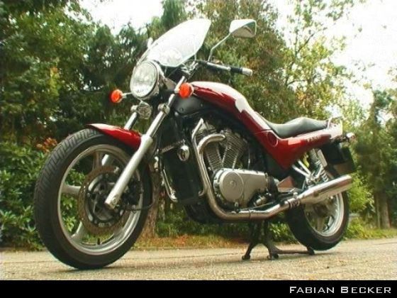 Habe die VX im Mai 2000 gekauft und von 34 auf 61 PS entdrosseln lassen: Teuer, aber es lohnt sich! Bin 38 Jahre alt und habe drei kleine Kinder, deswegen komme ich nicht zu Wochenendtouren, sondern lege auf der VX Arbeitsweg- kilometerchen zurück, pro Woche etwa 350-450. Leider ähneln die Landstraßen zwischen Bremen und Oldenburg fatal der Autobahn: Sie sind zwar ein bißchen schmaler aber fast genau so gerade. Aber wenn die Kinder mal aus dem Haus sind, so in zwanzig Jahren, dann wird gekurvt!