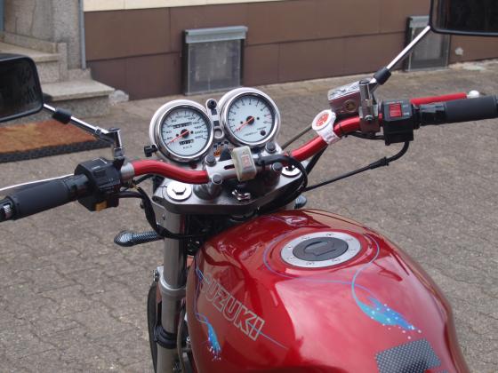 Baujahr 1996 | 45000 km | US-Modell. Eigene Veränderungen: ,MT-03 Scheinwerfer,Stahlflex rot hi/vo ,LED Zusatz-Rück/Bremslicht,Superbikelenker rot eloxiert, rutschhemmender Sitzbankbezug ,Miniblinker,Warnblinkanlage,Alu -Gummigriffe,Gabelprotektoren, lackierter Kühlerrahmen,Grill,Bremssättel und Gabelabdeckungen usw.