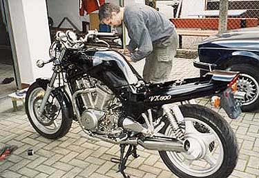 Baujahr 1992 | 90000 km | Nach Unfall Rahmenbruch. Eine zweite VX800 mit Motorplatzer aus dem Norden gekauft und den Rahmen Sandstrahlen lassen. Der Rahmen ist mit pulverbeschichtes Kunststoff lackiert.