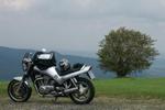 VS 51 B: Gabel mit Bruecken und Felge komplett von der GSF 1200, Doppelbremsscheibe vorn mit Sechskolbenstopper, Stahlflex v+h, Superbikelenker Lucas Typ10, hydraulische Kupplung von VS800, Minischeibe, schwarz gepulverte Felgen mit poliertem Rand, Gabel incl. Bruecken und Sozius-Buegel poliert, Kellermann-Miniblinker, kurzes Schutz"blech" hinten, Kennzeichen nach oben gesetzt, Audi-Silber lackiert. (Bilder sind nicht mehr ganz aktuell)