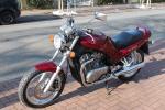 Progressive Gabelfedern von Wilbers,Stahlflex Bremsleitungen von Melvin, Hepco Becker Träger, Rest original. Und für die Touren mit Sozia noch eine King & Queen Sitzbank.