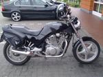 Mini-Blinker, Hepco&Becker Koffer, Vannuci Satteltaschen, Stahlflex-Leitungen, Gimbel Halbschale mit Doppelscheinwerfer