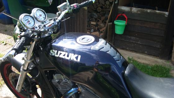 Heckumbau:Rücklicht,Kennzeichenhalter,Blinker Front: Klarglasscheinwerfer,Blinker,Puig Windschild,Blaue LED Tachobeleuchtung nach der Anleitung vom VX Forum. Anderer Lenker von AMB mit anderen Lenkerenden und Griffen. BSM Auspuff Classic 2-2 Öltemeraturanzeige Progressive Gabelfedern von Wilbers