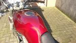 Die Suzuki ist in original Farbe lackiert. Die Folien wurden mit Klarlack überlackiert. Die Halter für die Koffer sehen nicht schön aus, aber funktionieren.