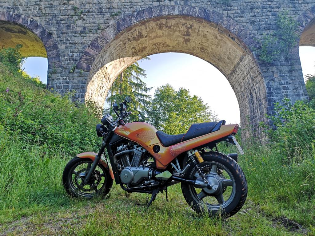Motor komplett überholt (inkl geänderter Kettenspanner, Zündzeitpunkt geändert, Hauptdüsen geändert), Alu-Motorhalter, Auspuff Eigenbau, LSL Lenker(Griffe mit VX-Beschriftung), YSS-Gabelventile, Standrohre DLC-Beschichtet, VMax-Fender vorn, Öhlins-Federbeine hinten, LED-Scheinwerfer, Batteriekasten Kunststoff-Eigenbau, Sitzbank aufgepolstert(mit Gel), neu bezogen, mit Sitzheizung, Felgen/Motor und Kleinteile in Magnesio Metallic lackiert, viel kleine Gewichtseinsparungen