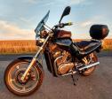 Eigentlich nur Anbauten (Scheibe, Tasche, Topcase), sonst ziemlich original. Etwas höherer Lenker.