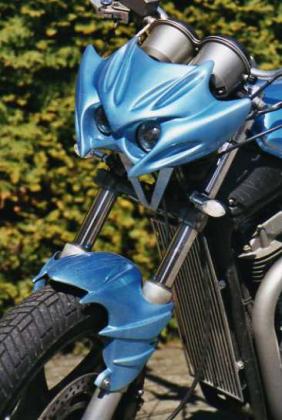 Frontmaske, Kotflügel, Kühlergrill, Holme + Gabelbrücke poliert, Widebar, Spiegel, Griffe, Stahlflex(V), Heck gekürzt/geschlossen, Blinker + Rücklicht LED, Effektlack
