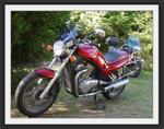 Kleines Windschild, Hepko&Becker-Träger mit Koffen und Topcase. 2farbig bezogene Sitzbank. Wilbers-Gabelfedern. Hab die Gute inzwischen verkauft und fahre jetzt eine Suzuki SV650N. Ein Bild hänge ich von ihr hier rein. ;-)